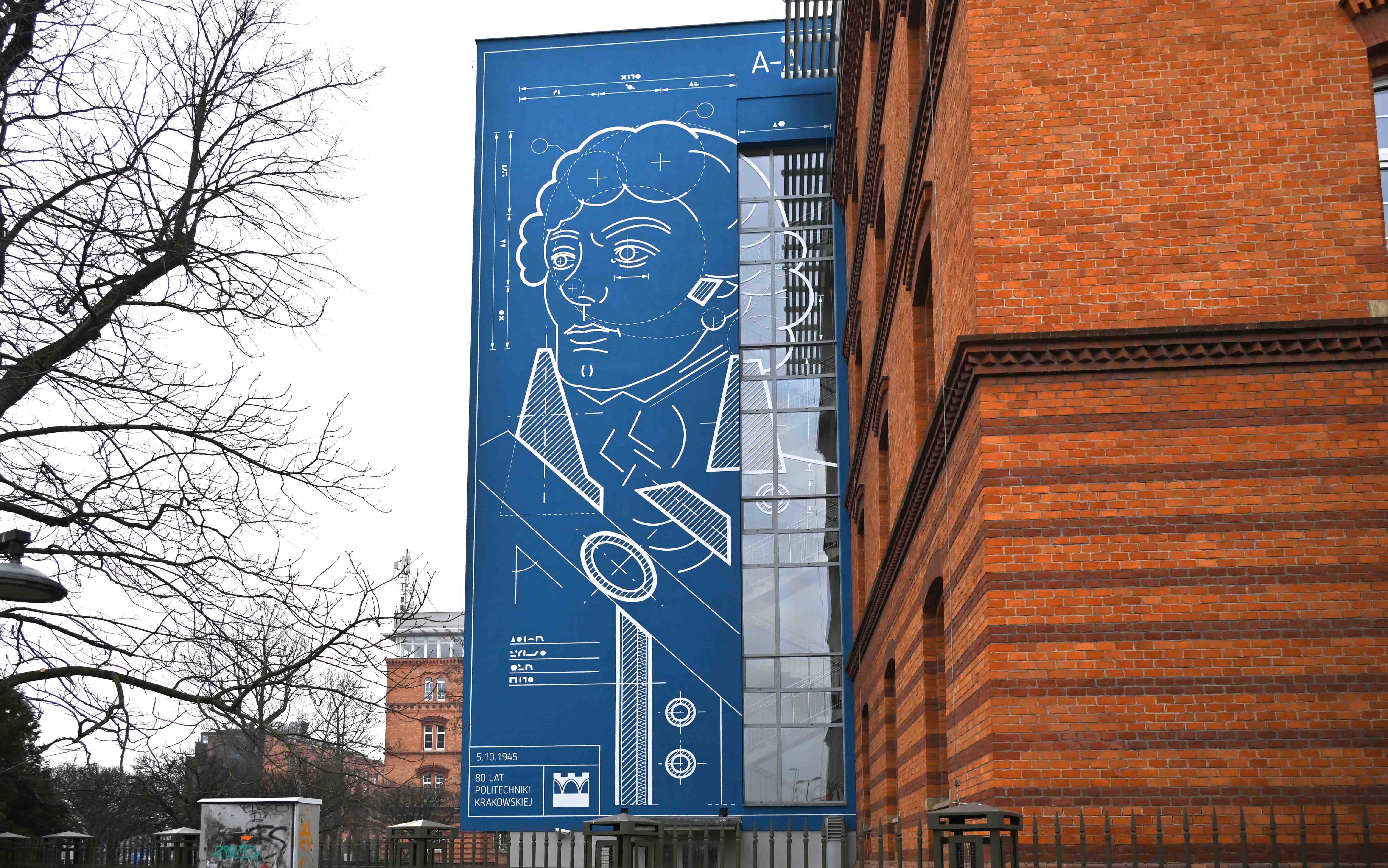 Dzieło, zaprojektowane przez znanego twórcę Marcina Wierzchowskiego, nawiązuje do postaci patrona Politechniki Tadeusza Kościuszki i symboliki rysunku technicznego.